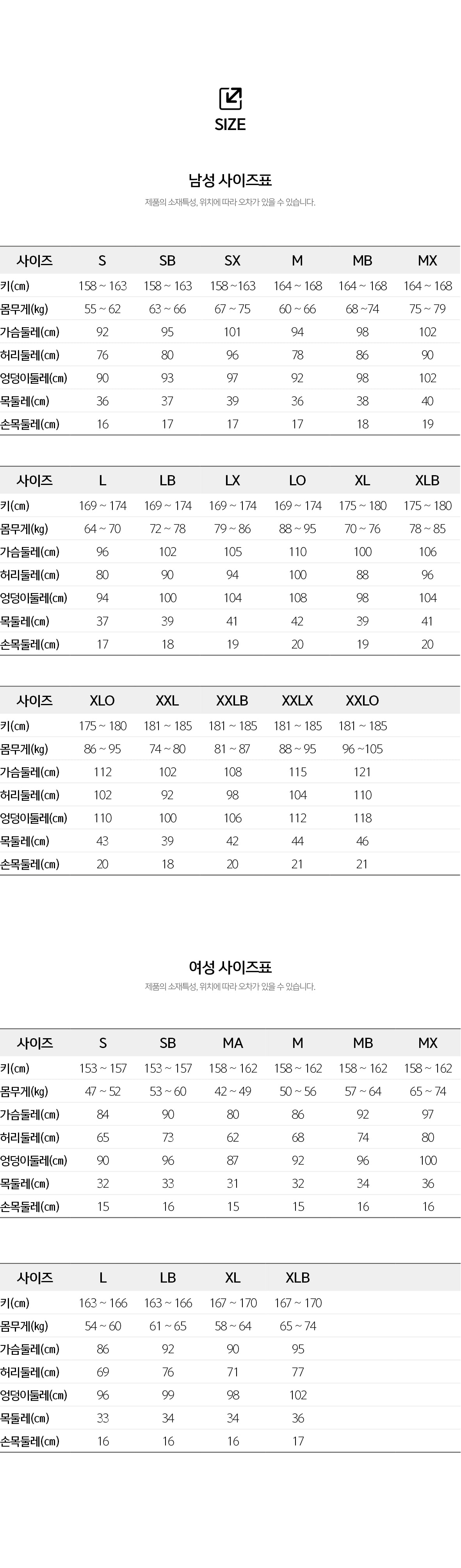치수 상품페이지 참고